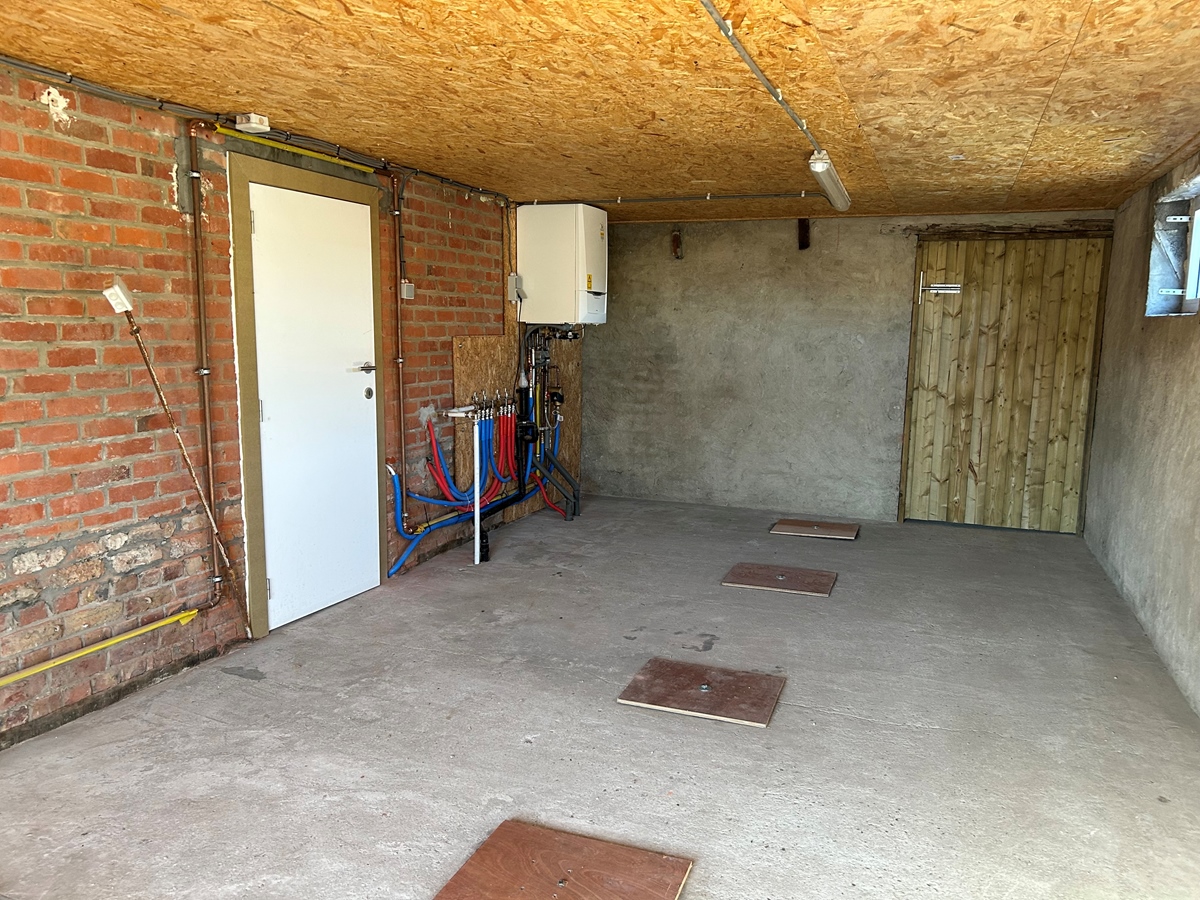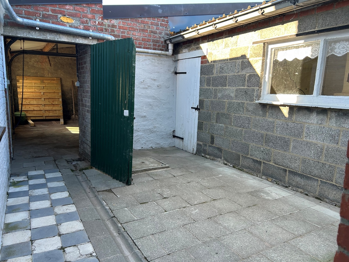 - GLVL.: inkomhall, woonkamer, keuken, veranda, berging/wasplaats, binnenkoertje met WC, ruime garage én extra klein atelier.