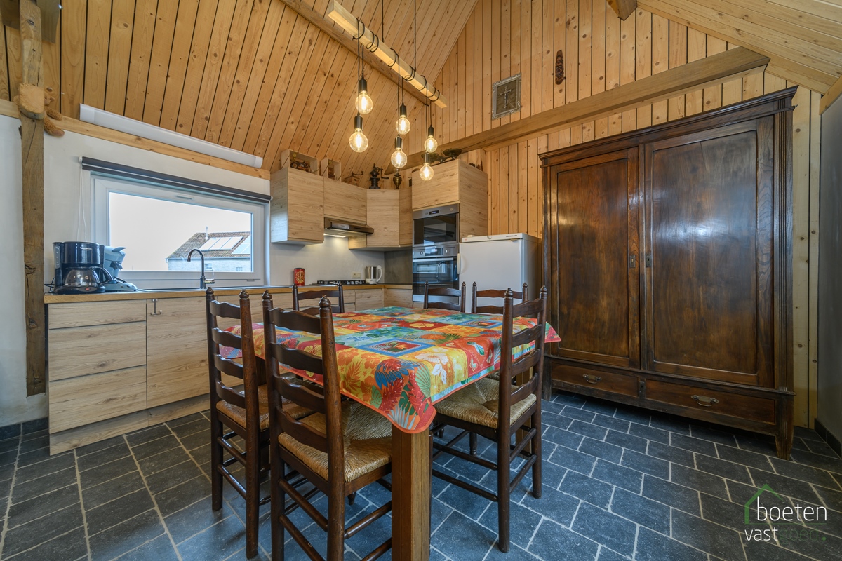 Het bijgebouw biedt een gezellige leefruimte met ingerichte keuken en badkamer. Dit gebouw heeft een waaier aan mogelijkheden: extra leefruimte en/of slaapkamer (b.v. kangoeroewoning), praktijkruimte, vakantiewoning,... Klein maar fijn & gezelligheid troef! Het bijgebouw kan ook van toepassing zijn als de nieuwe toekomstige eigenaars het woonhuis willen renoveren en er toch al ter plaatse willen wonen want dat bijgebouw biedt alle comfort.