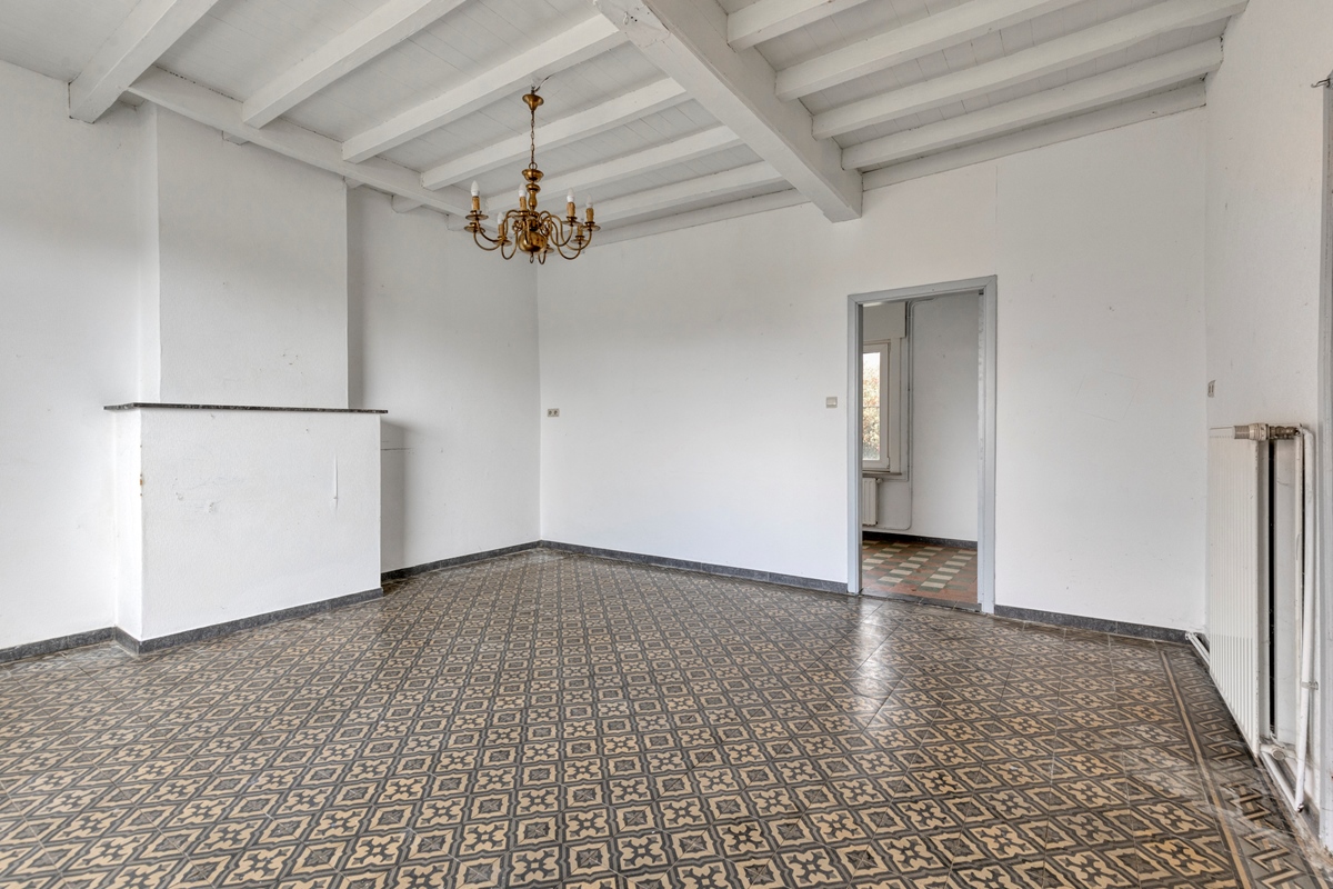 - Woonhuis: bij het betreden van de woning valt je onmiddellijk die typische authentieke landelijke tegelvloer op in de inkomhall/gang - aan de ene kant treffen we de woonkamer aan met aanpalend een klein kamertje (b.v. ideaal als bureau) - aan de andere kant is er een grote vauteruimte die bestaat uit 3 kamerruimtes (waarbij 2 voorzien zijn van een eigen wastafel) - onder de vautekamer vinden we dan een grote droge kelder terug (deze werd behandeld tegen opstijgend vocht) met o.a. de C.V.-ketel - aansluitend op de gang treffen we de standaard ingerichte keuken aan (voorzien van o.a. keramische kookplaat, oven en vernieuwde kasten) - tot slot vinden we beneden de badkamer terug (met douche en wastafel) en een apart toilet.