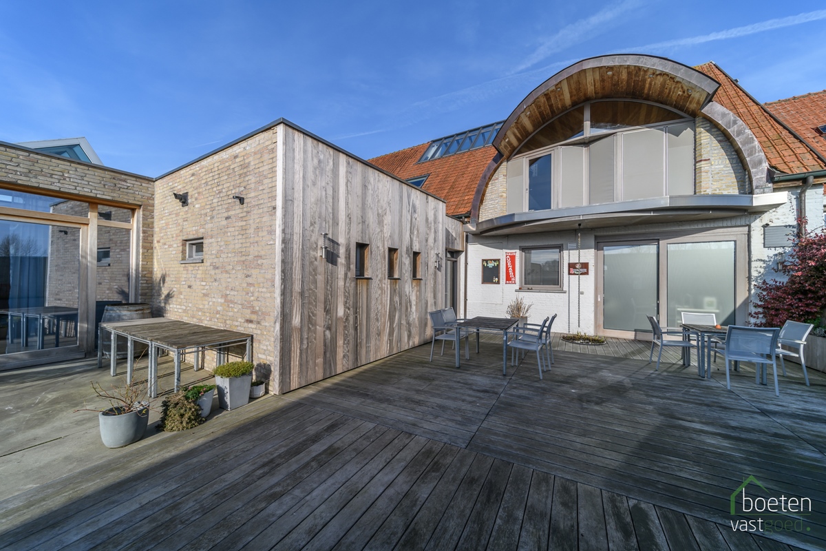 Buiten werd er ook een nieuw terras aangelegd (ca 40m²). Verder staat er een handige berging en is er een zongerichte én volledig afgesloten tuin. Het eigendom is perfect naar het zuiden gericht, dus altijd wel ergens zon te spotten voor de mensen die iets nuttigen op het terras.