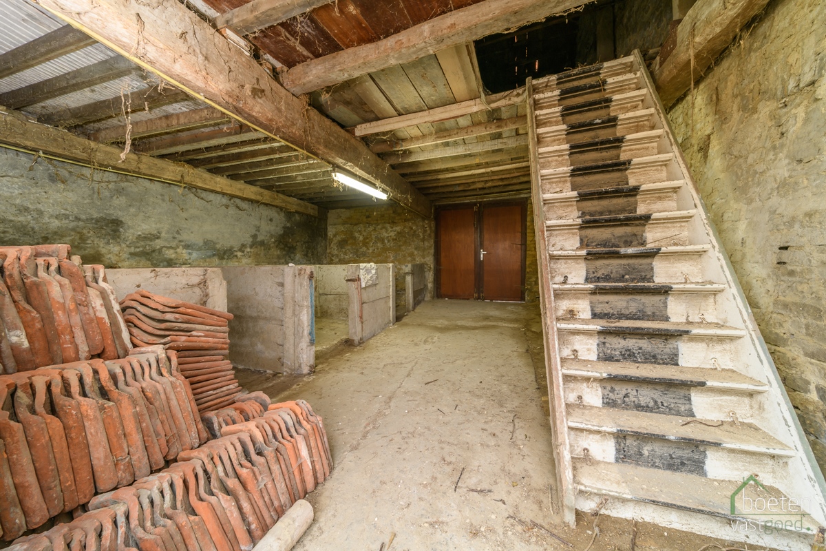 - GLVL.: woonkamer, slaapkamer, keukenruimte, wasplaats/berging, badkamer, extra berging, diverse bergingen, aanpalend garage/vroegere stallingen met zolder, kelder met vautekamer.
