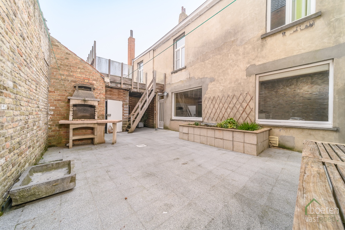 Misschien denkt U wel: weer zo'n woning in het centrum waar je niet buiten kan... Fout! Er is een ruim terras voorzien waarbij in de zalige zomerdagen ook van de zon kan genoten worden én van uw eigen privacy! Enkele buitenbergingen maken dat we alle ruimtes nu overlopen hebben.