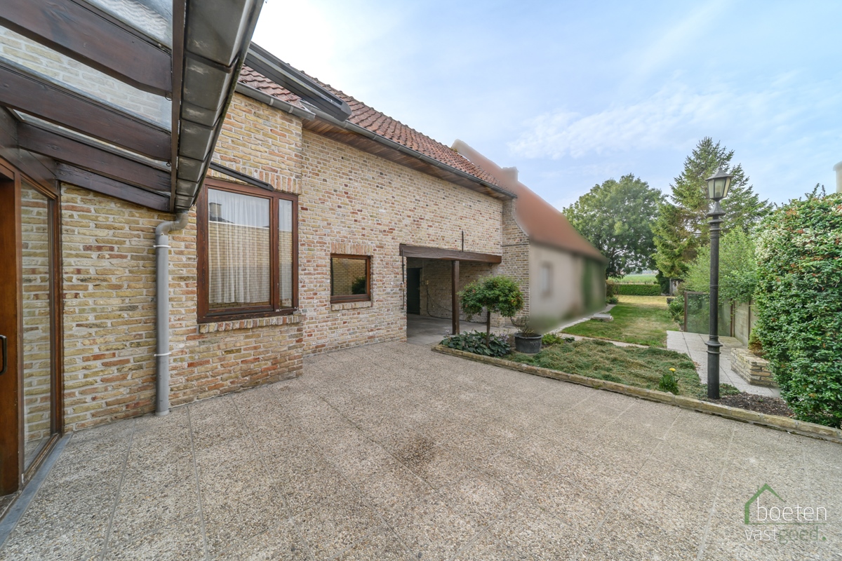 Charmante dorpswoning met 3 slpks, heel wat ruimte, zongericht terras, uitweg achteraan met garage en diepe tuin op 865m² totale grondopp.