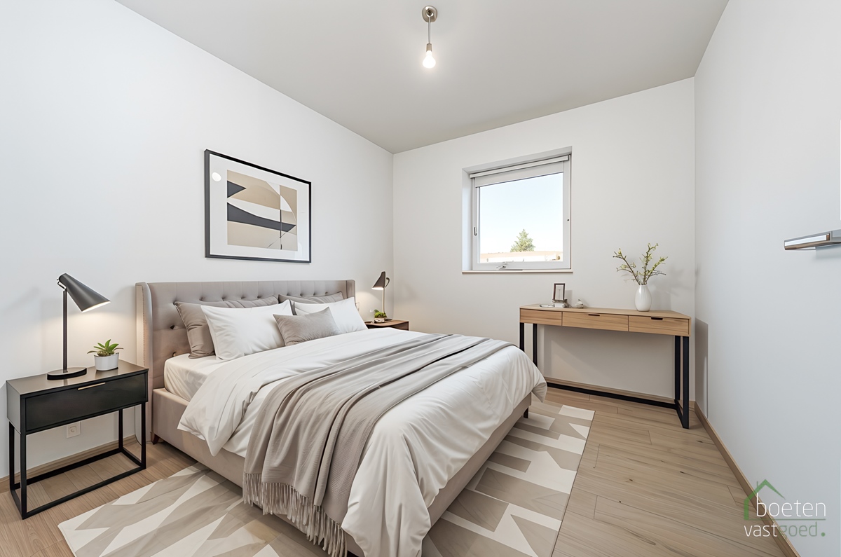 Naar indeling vinden we op het gelijkvloers een inkomhall met een apart toilet, een open woon- en leefruimte met veel lichtinval en een open ingerichte keuken (met aansluitend handige berging/wasplaats). Door de vloerverwarming beneden verliest u geen ruimte en kunt u gemakkelijk uw meubilair plaatsen. Op het eerste verdiep zijn er 3 slaapkamers en een badkamer.